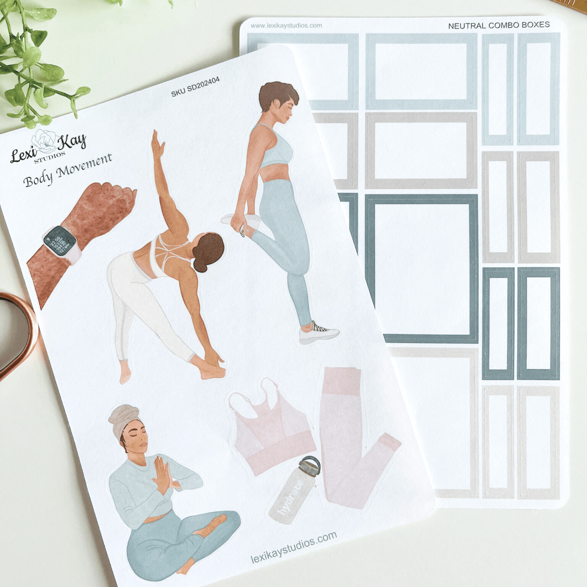 Add flair to your planner or journal with our charming hand-drawn sticker sheet inspired by various body movements.