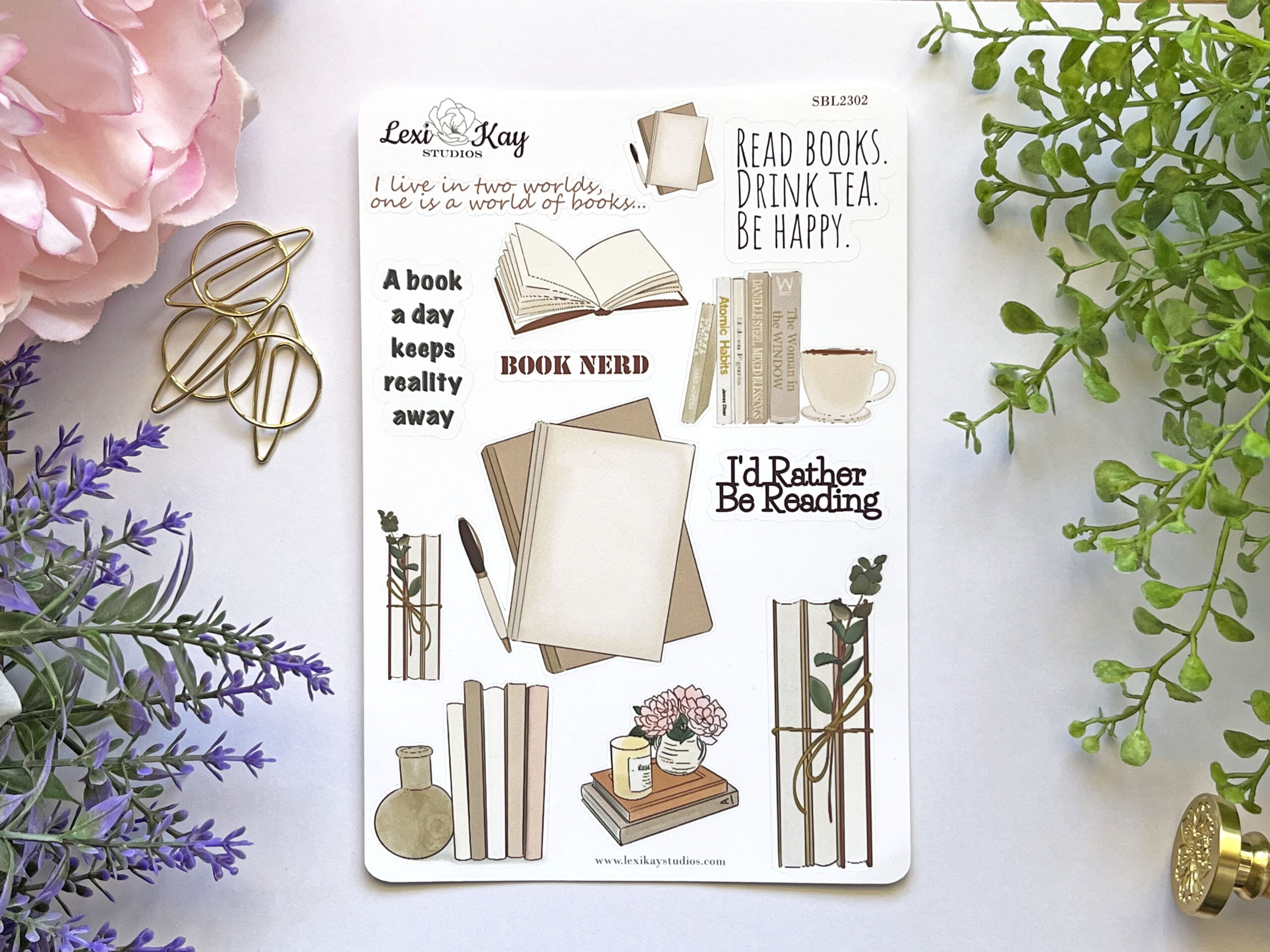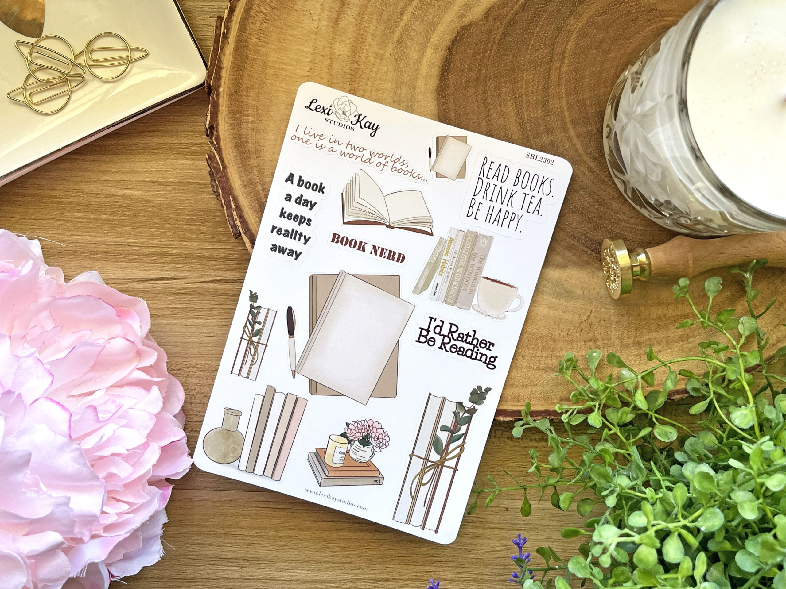 Decorate your planner or journal using this book lovers inspired, hand drawn sticker sheet.