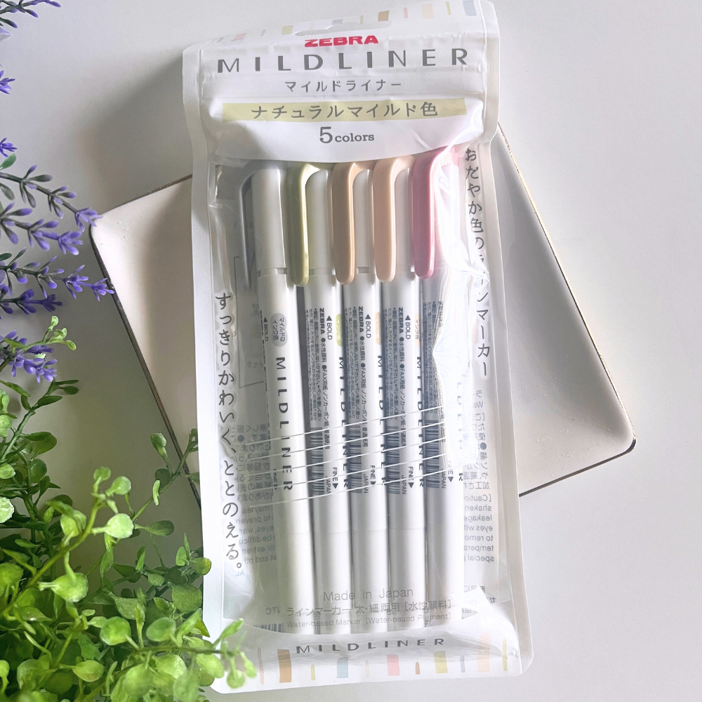 Set of 5 Zebra Pen Mildliner Double-Ended Highlighter Set, Broad and Fine Point Tips, No Bleed Assorted Mild Colours Ink Colors