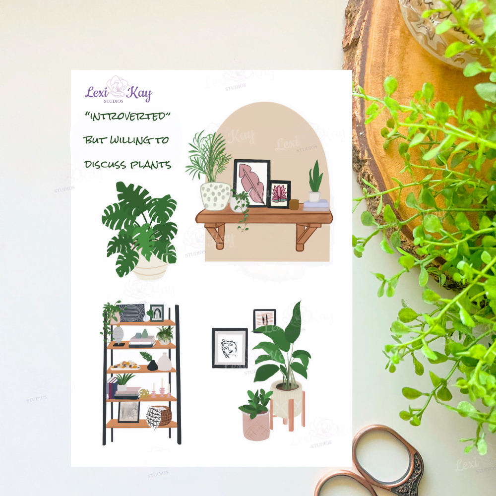Decorate your planner or journal using this Plants and shelves printable sticker sheet. Print and cut as many as you need!