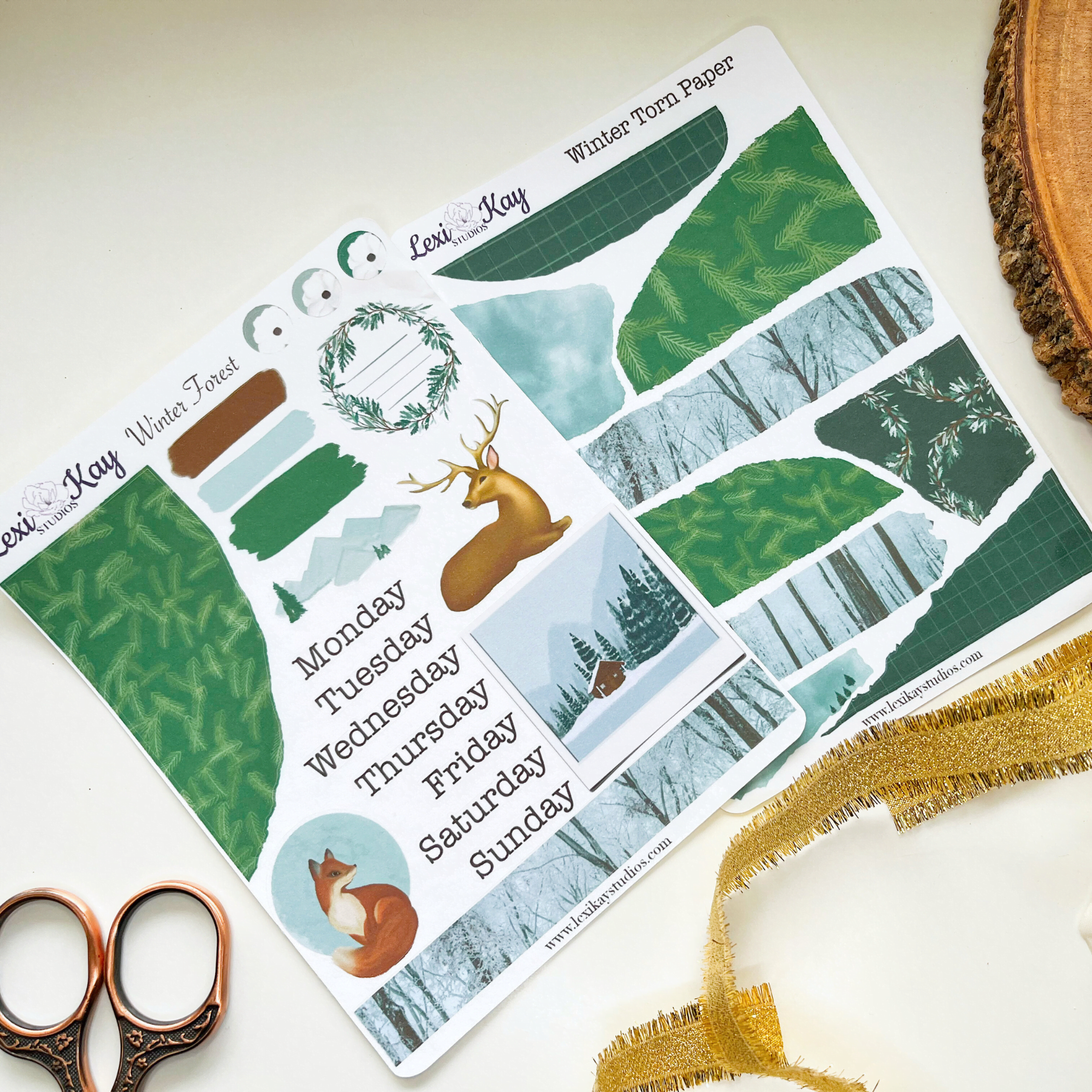 Decorate your planner or journal using this Winter Forest Torn Paper Printable Sticker Sheet. Print and cut as many as you need!